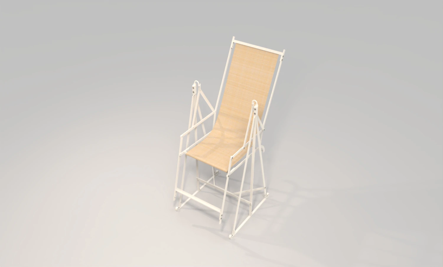 Se analizaron en profundidad todos los vinculo mecánicos que hacen a la hamaca única: ya que permite un movimiento desde la posicion sentado hasta reclinarse completamente horizontal.