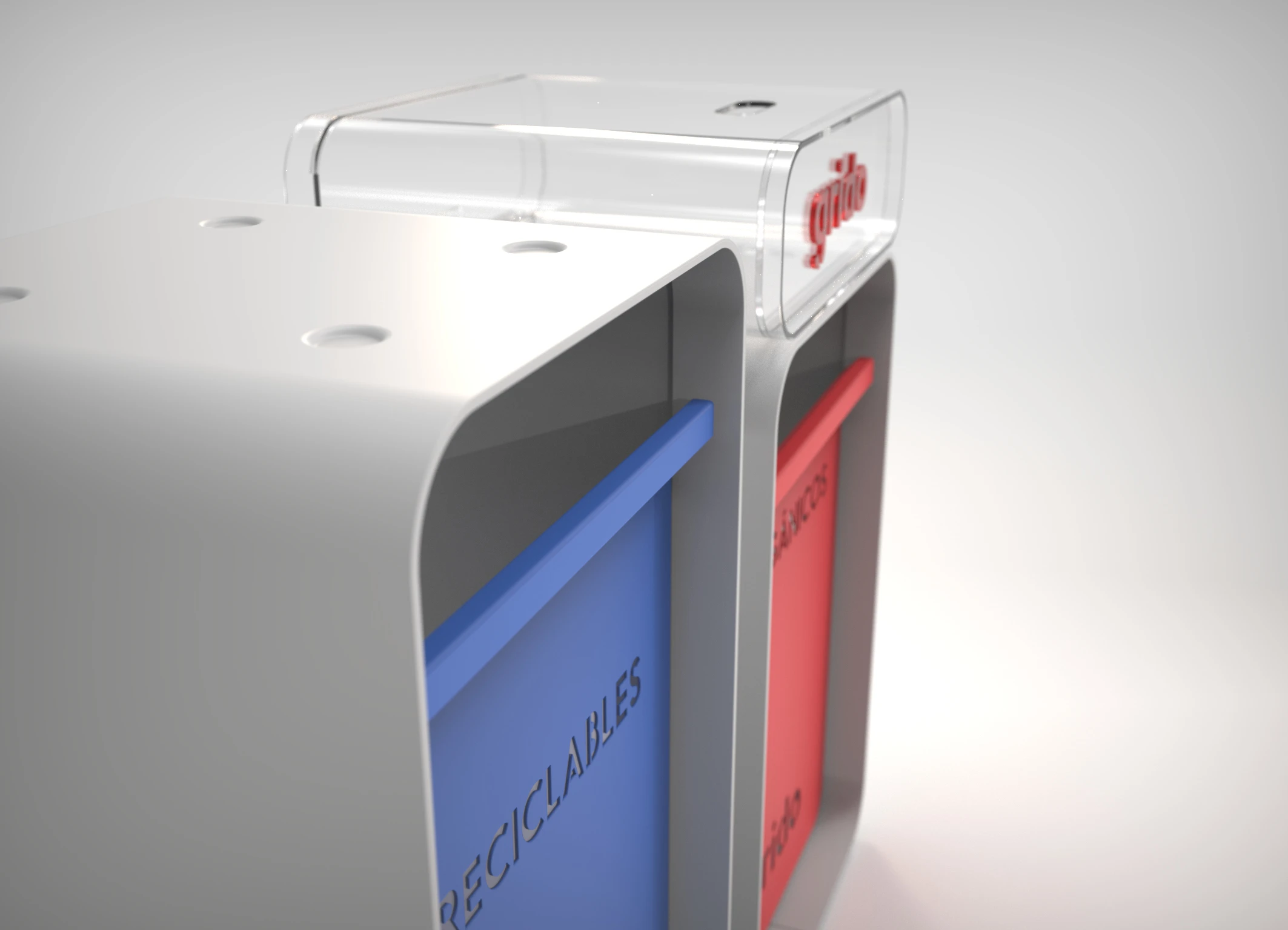 Desde la integracion con el código identitario de la marca, hasta colores distintivos para la rapida identificacion del tipo de residuo.